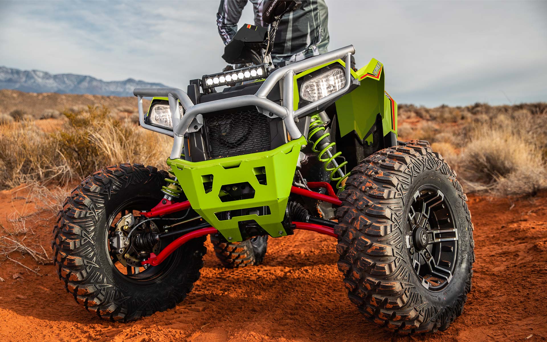 Scrambler XP 1000 S byl navržen pro maximální odolnost a pohodlí a abyste nad ním měli plnou kontrolu i v těch nejnáročnějších podmínkách. Díky jednomu z nejodolnějších podvozků, jaké jsme kdy vyrobili, motoru ProStar s výkonem 89 koní, objemem 952 cm3 a celkové hmotnosti 417 kg projedete každou trasu rychleji, než jste si kdy dokázali představit! Nový brzdový systém s dvoupístovým zadním třmenem zvyšuje účinnost brzdění, zatímco kratší rozvod brzdového vedení zajišťuje agresivnější a přesnější brzdný výkon.
